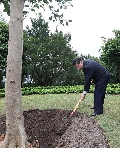 2012年12月,黨的十八大后首次赴地方考察,習(xí)近平總書記來到深圳蓮花山公園,深情瞻仰鄧小平塑像,并親手種下一棵高山榕。