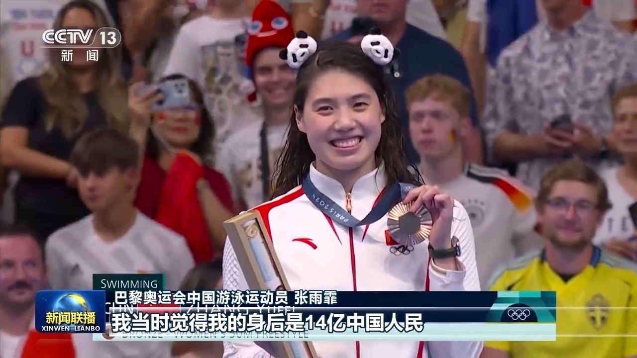 巴黎奧運(yùn)會(huì)中國游泳運(yùn)動(dòng)員 張雨霏:沒有想到他當(dāng)時(shí)走在我們跟前,每一名運(yùn)動(dòng)員的成績(jī)和名字他都記住了,然后就是親切地與我們交談,每個(gè)人交談的內(nèi)容都不一樣。我覺得生在中國真好,特別是在賽場(chǎng)上的時(shí)候,我沒有拿到冠軍,但是我看見一面面五星紅旗,他們依然在為我加油吶喊,安慰我,我當(dāng)時(shí)覺得我的身后是14億中國人民。