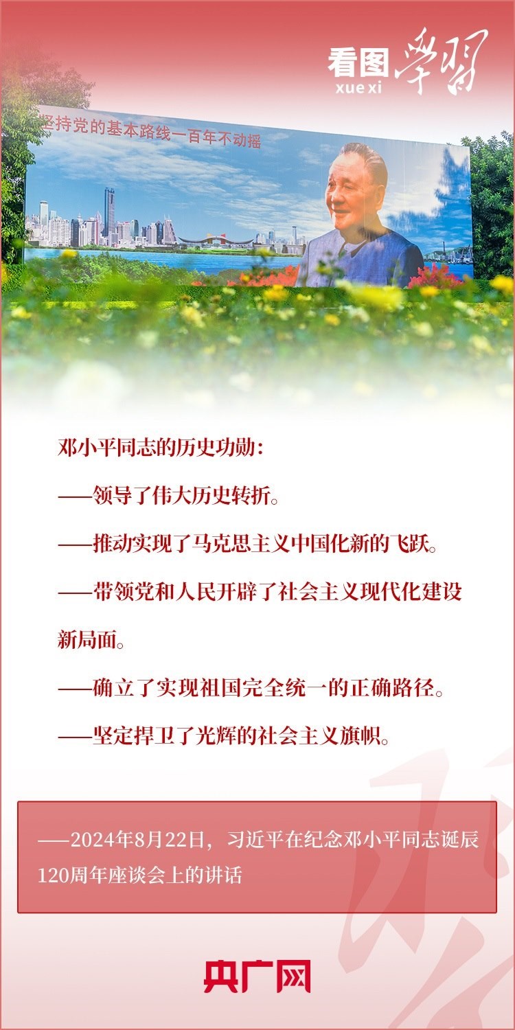 8月22日,習近平總書記在紀念鄧小平同志誕辰120周年座談會上發(fā)表重要講話指出,鄧小平同志的歷史功勛是全方位的、開創(chuàng)性的,對中國和世界的影響是深刻的、長遠的??倳洀娬{,對鄧小平同志最好的紀念,就是把他開創(chuàng)的中國特色社會主義事業(yè)繼續(xù)推向前進。我們要緊緊圍繞以中國式現(xiàn)代化全面推進強國建設、民族復興偉業(yè)這個中心任務,繼往開來,奮發(fā)進取。一起來學習!