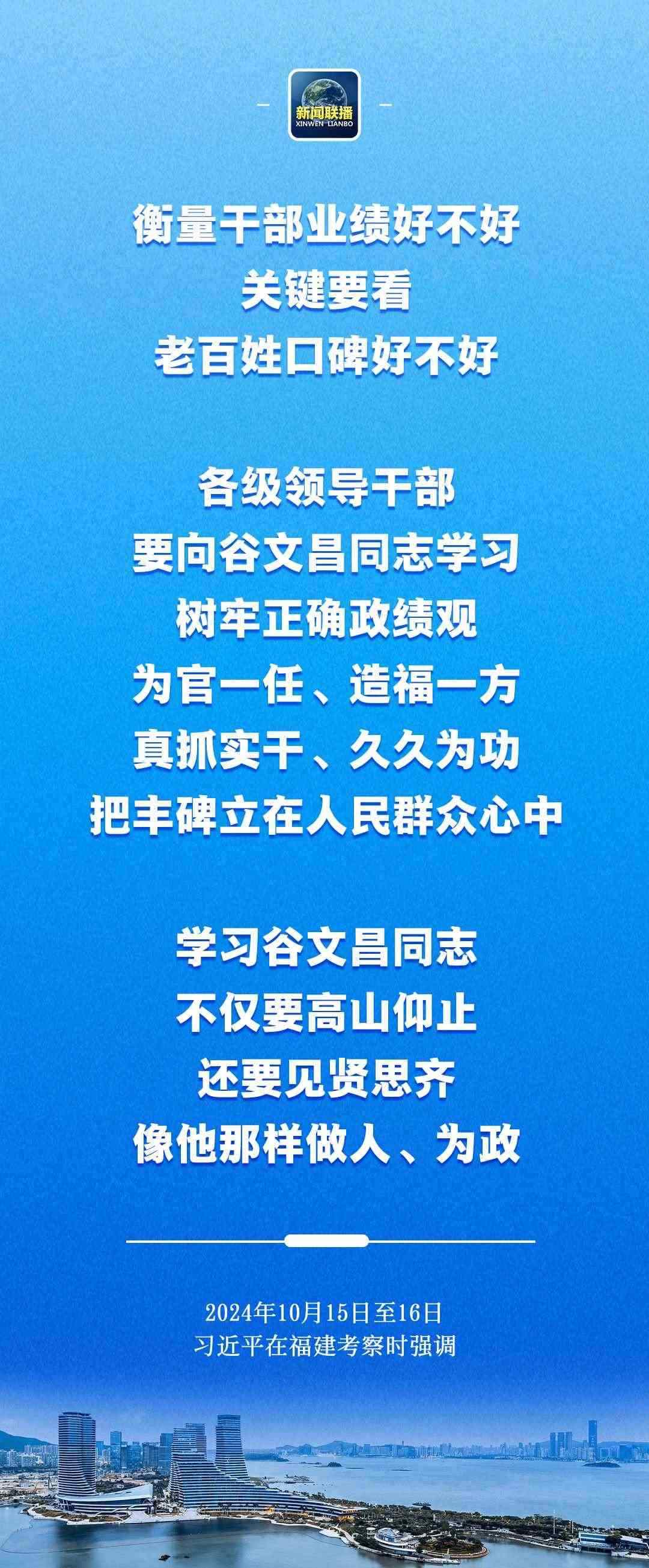 習近平在谷文昌紀念館考察時指出,衡量干部業(yè)績好不好,關(guān)鍵要看老百姓口碑好不好。各級領導干部要向谷文昌同志學習,樹牢正確政績觀,為官一任、造福一方,真抓實干、久久為功,把豐碑立在人民群眾心中。學習谷文昌同志,不僅要高山仰止,還要見賢思齊,像他那樣做人、為政。