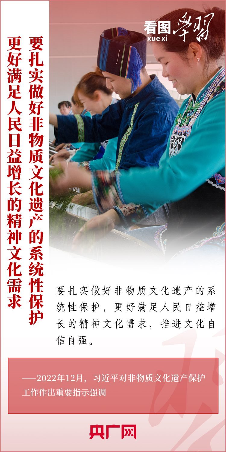 非物質(zhì)文化遺產(chǎn)是中華優(yōu)秀傳統(tǒng)文化的重要組成部分,是中華文明綿延傳承的生動見證。習(xí)近平總書記高度重視推動中華優(yōu)秀傳統(tǒng)文化的創(chuàng)造性轉(zhuǎn)化、創(chuàng)新性發(fā)展,多次對非物質(zhì)文化遺產(chǎn)保護(hù)工作作出重要指示,強調(diào)要扎實做好非物質(zhì)文化遺產(chǎn)的系統(tǒng)性保護(hù),推動中華文化更好走向世界。