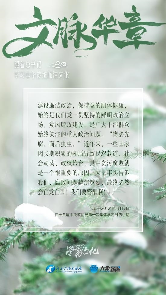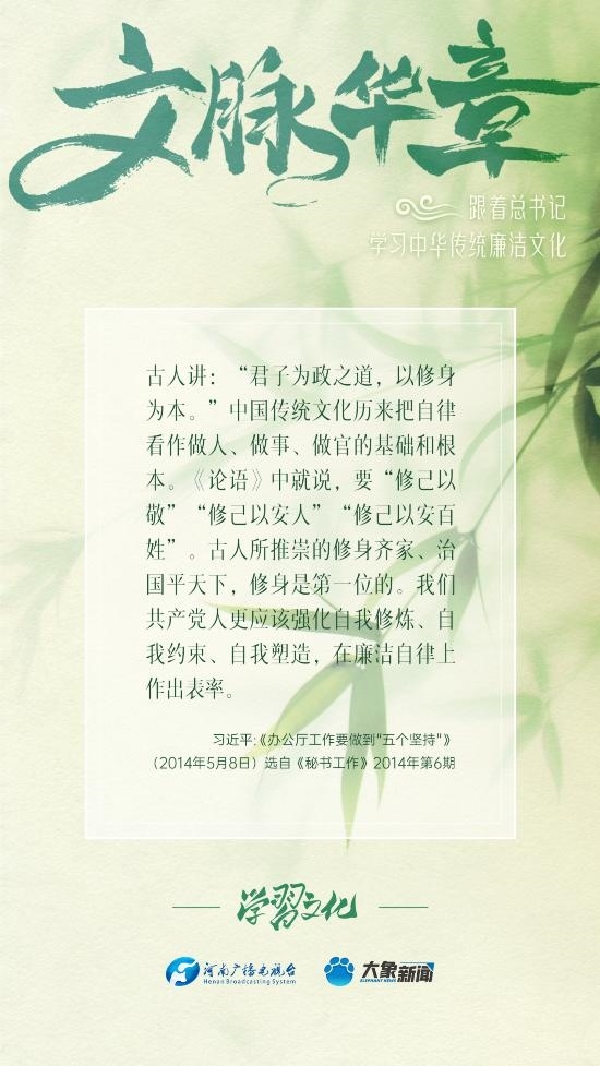 中華優(yōu)秀傳統(tǒng)文化蘊含著豐富的廉潔文化,習近平總書記曾指出:沒有中華優(yōu)秀傳統(tǒng)文化、革命文化、社會主義先進文化的底蘊和滋養(yǎng),信仰信念就難以深沉而執(zhí)著??倳洺3R?jīng)據(jù)典,教育引導廣大黨員干部正心修身,涵養(yǎng)文化,守住為政之本。大象新聞分五期為您梳理,我們一起跟著總書記學習中華傳統(tǒng)廉潔文化。今天推出第五期。