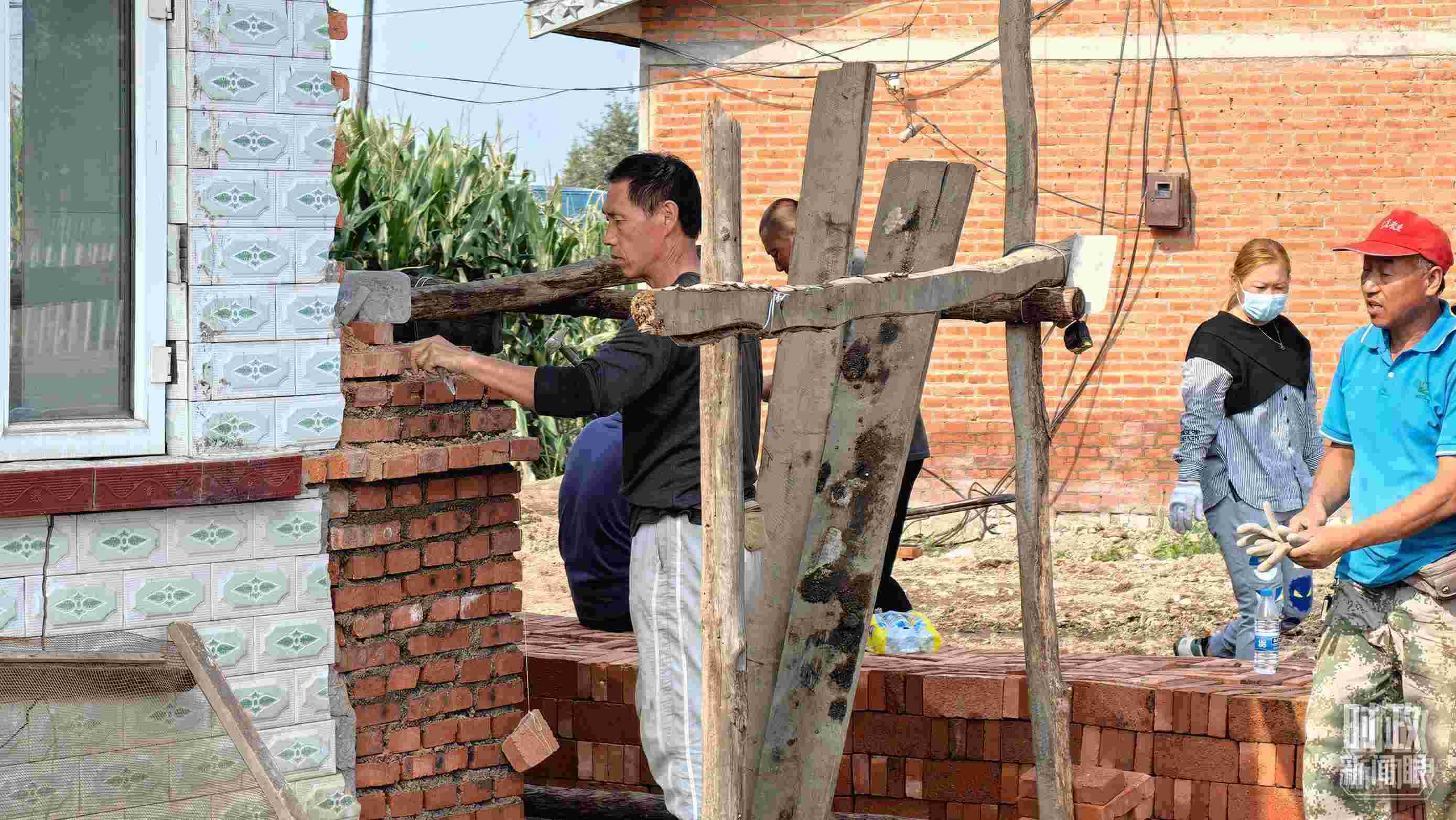 △2023年9月,黑龍江龍王廟村村民在修繕在洪水中受損的房屋。(總臺央廣記者潘毅拍攝)