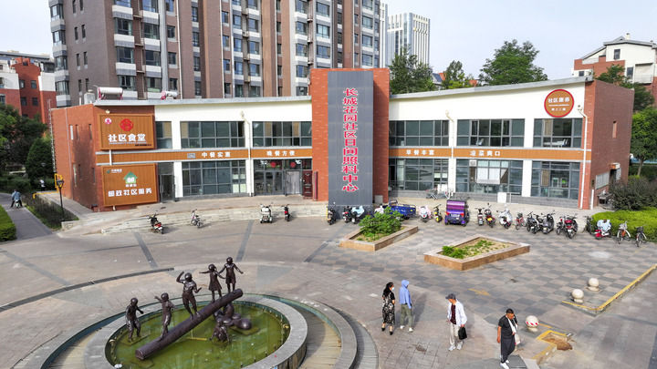 這是2024年6月20日拍攝的寧夏銀川市金鳳區(qū)長城花園社區(qū)日間照料中心(無人機照片)。新華社記者 馮開華 攝