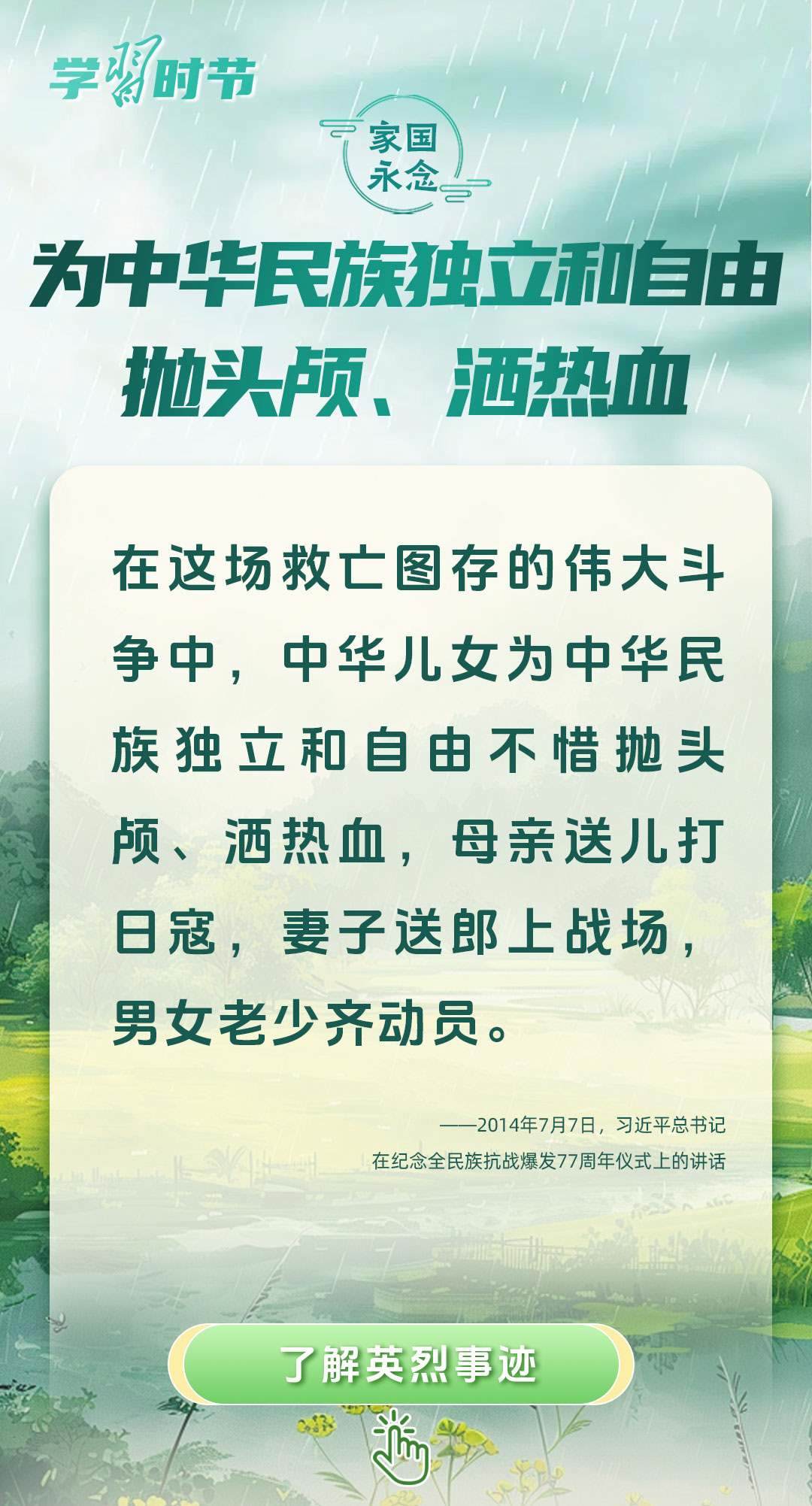 黨的十八大以來,習近平總書記曾在多個場合講述英烈故事、致敬英烈精神、緬懷英烈忠魂,表達對英烈的崇敬之情。清明節(jié)到來之際,讓我們重溫習近平總書記的相關重要講話,崇尚英雄、緬懷英烈,厚植家國情懷,凝聚前行力量。