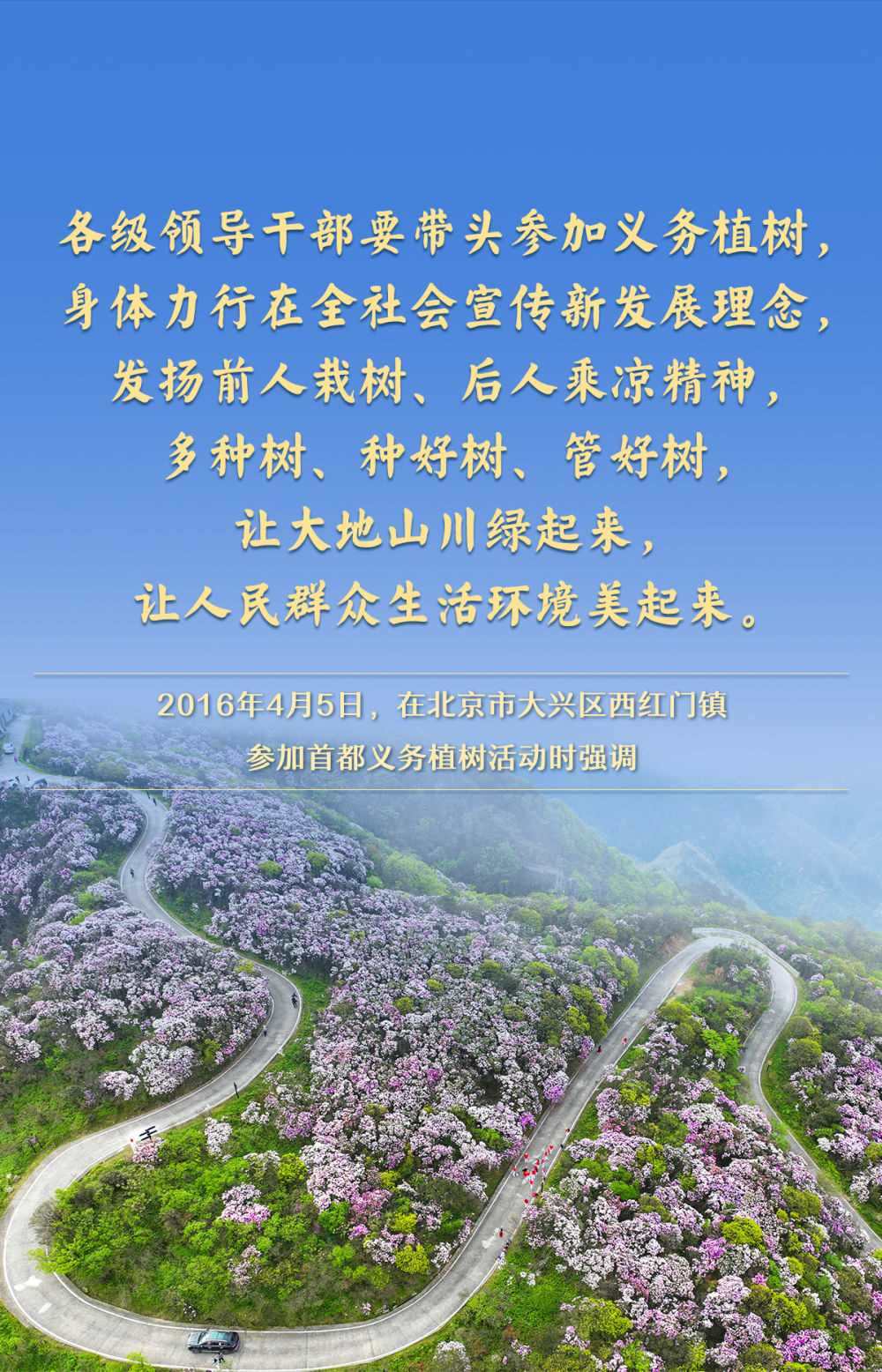 黨的十八大以來,習(xí)近平總書記高度重視國土綠化,每年都同干部群眾一起參加首都義務(wù)植樹,并作出一系列重要論述,為推進(jìn)美麗中國建設(shè)、實(shí)現(xiàn)人與自然和諧共生的現(xiàn)代化指明方向。