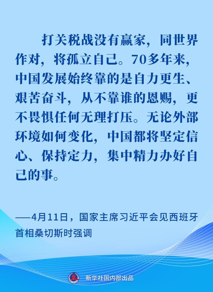 “打關(guān)稅戰(zhàn)沒有贏家,同世界作對,將孤立自己。70多年來,中國發(fā)展始終靠的是自力更生、艱苦奮斗,從不靠誰的恩賜,更不畏懼任何無理打壓。無論外部環(huán)境如何變化,中國都將堅(jiān)定信心、保持定力,集中精力辦好自己的事?!?/p>