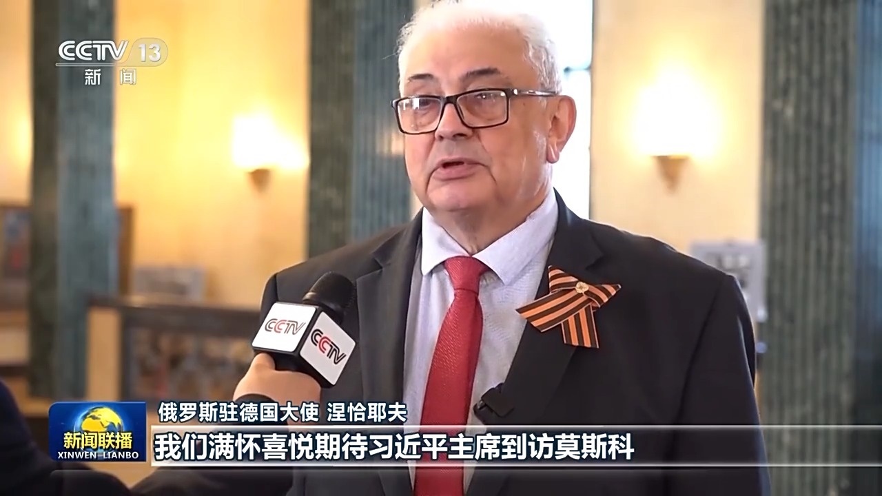 俄羅斯駐德國大使 涅恰耶夫:我們滿懷喜悅期待習(xí)近平主席到訪莫斯科。蘇聯(lián)人民和中國人民在二戰(zhàn)中付出了巨大犧牲,最終贏得世界反法西斯戰(zhàn)爭勝利。習(xí)主席曾引用俄歷史學(xué)家克柳切夫斯基的話說,如果喪失對歷史的記憶,我們的心靈就會在黑暗中迷失,我認(rèn)為習(xí)主席觀點非常正確。每個國家、每個民族都必須了解歷史,沒有歷史就沒有真正的未來,我對兩國人民擁有良好的關(guān)系和美好的未來充滿希望。