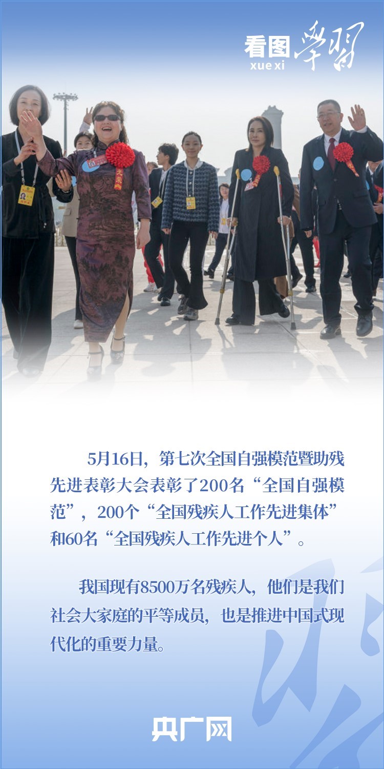 “殘疾人是推進(jìn)中國式現(xiàn)代化的重要力量,也是需要格外關(guān)心、格外關(guān)注的特殊困難群體?!?月16日,第七次全國自強(qiáng)模范暨助殘先進(jìn)表彰大會在京召開。習(xí)近平總書記作出重要指示,代表黨中央,向受表彰的全國自強(qiáng)模范和殘疾人工作先進(jìn)集體、先進(jìn)個人表示祝賀,向全國廣大殘疾人及其親屬、殘疾人工作者致以問候。