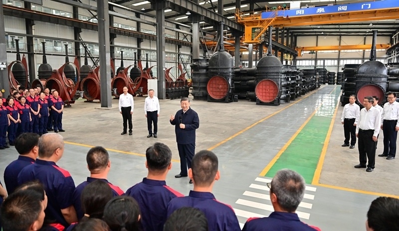 7月7日至8日,中共中央總書(shū)記、國(guó)家主席、中央軍委主席習(xí)近平在山西考察。這是7日下午,習(xí)近平在陽(yáng)泉閥門股份有限公司考察。新華社記者 謝環(huán)馳 攝