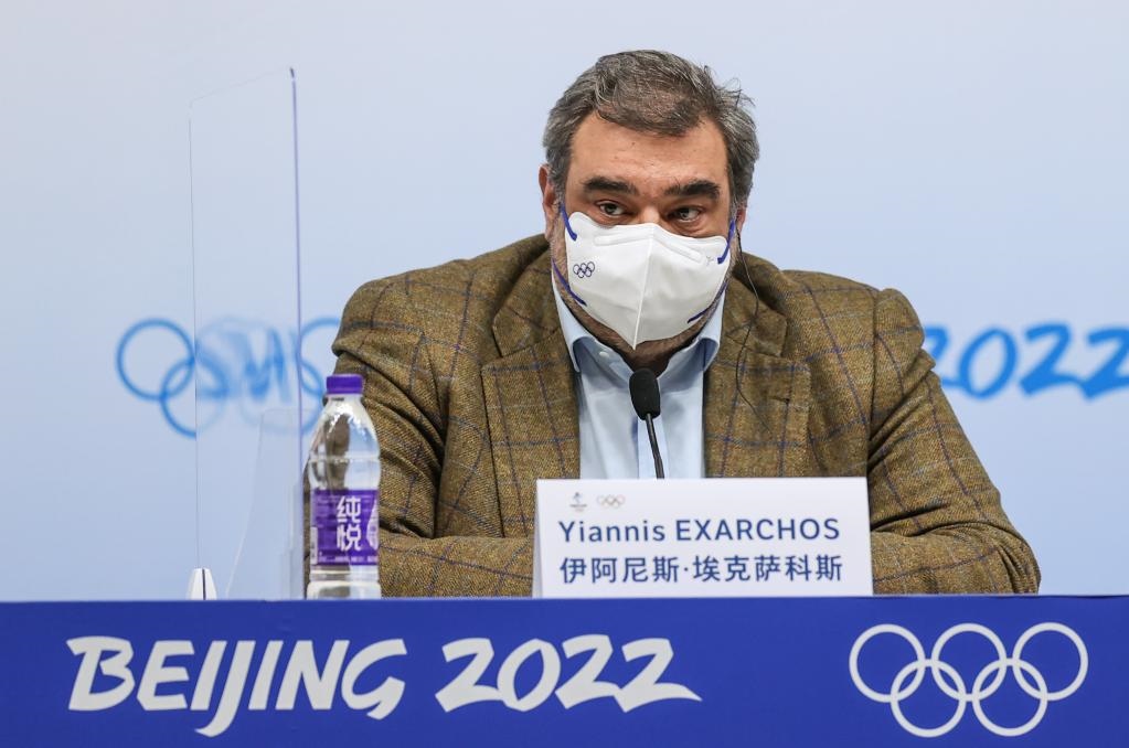 2月14日,奧林匹克轉(zhuǎn)播服務(wù)公司首席執(zhí)行官伊阿尼斯·??怂_科斯在新聞發(fā)布會(huì)上。新華社記者楊磊攝