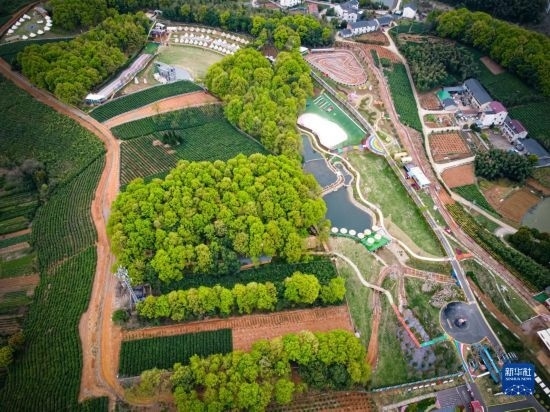 這是3月29日拍攝的諸暨市楓橋鎮(zhèn)陽春村陽春山月游樂度假村(無人機照片)。當?shù)赝ㄟ^閑置荒山土地流轉發(fā)展鄉(xiāng)村旅游,幫助當?shù)卮迕窈痛寮w增收。
