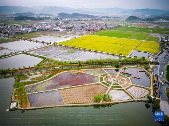 這是3月29日拍攝的諸暨市楓橋鎮(zhèn)杜黃新村農(nóng)耕體驗研學基地(無人機照片)。近年來,當?shù)赝瞥鍪喾N農(nóng)事特色體驗項目,著力打造“田上杜黃”這一文旅品牌。