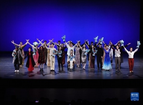 4月3日,演員在舞劇《藍色裙擺》中表演。