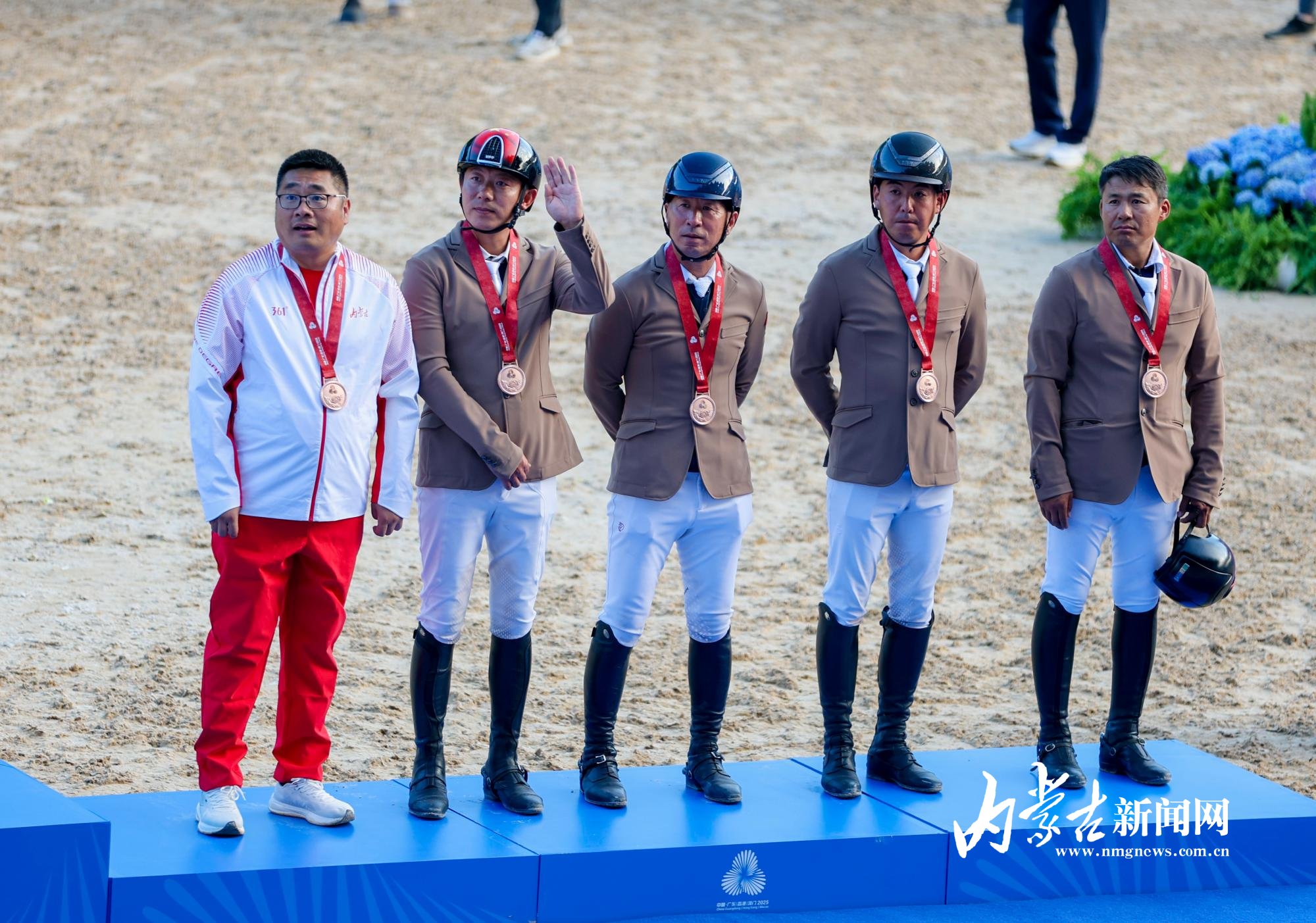 11月17日,第十五屆全國運(yùn)動會馬術(shù)項目場地障礙團(tuán)體賽在深圳市光明國際馬術(shù)中心進(jìn)行,由達(dá)日瑪、劉同晏、張睿、韓豐組成的內(nèi)蒙古隊?wèi){借兩輪穩(wěn)定發(fā)揮,以總罰分31分的成績斬獲銅牌。