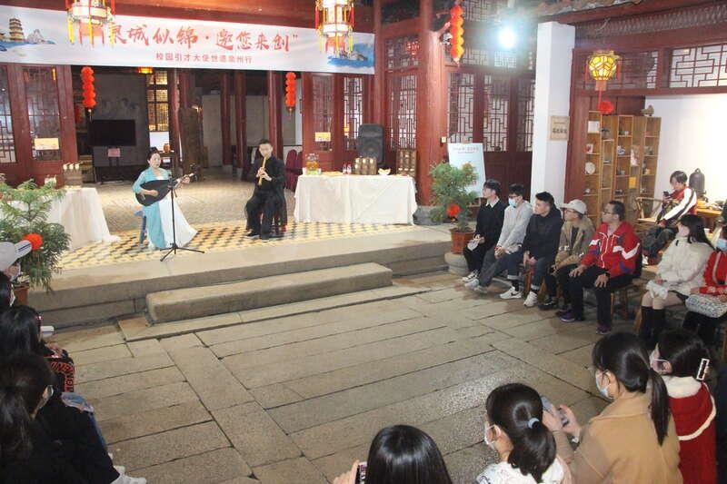 1月24日,共青團(tuán)泉州市委開(kāi)啟“校園引才大使”世遺之旅。團(tuán)市委帶領(lǐng)返鄉(xiāng)泉籍學(xué)子參觀(guān)了洛陽(yáng)橋,領(lǐng)略泉州作為“海上絲綢之路”起點(diǎn)的歷史底蘊(yùn)和文化魅力;走訪(fǎng)泉州古城西街,參觀(guān)結(jié)合現(xiàn)代文化與閩南傳統(tǒng)文化打造的城市復(fù)合空間;在閩南文化驛站,學(xué)生參觀(guān)了當(dāng)?shù)乇4孀顬橥晟?,?guī)模在區(qū)域內(nèi)最大的一座閩南官邸。此外,學(xué)生還跟隨南音代表性傳承人劉巧婷、沈藝捷聽(tīng)南音、學(xué)南音;觀(guān)看了留有閩南地區(qū)民間信仰及婚喪嫁娶習(xí)俗的提線(xiàn)木偶表演。