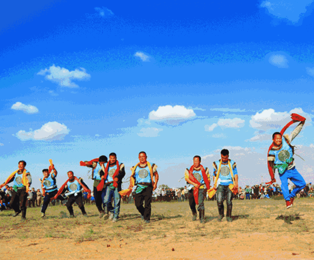 即摔跤,是蒙古族“男兒三藝”之一,屬蒙古族傳統(tǒng)體育項目,以錫林郭勒盟為中心分布于整個內(nèi)蒙古地區(qū)。2006年,入選第一批國家級非物質(zhì)文化遺產(chǎn)名錄。