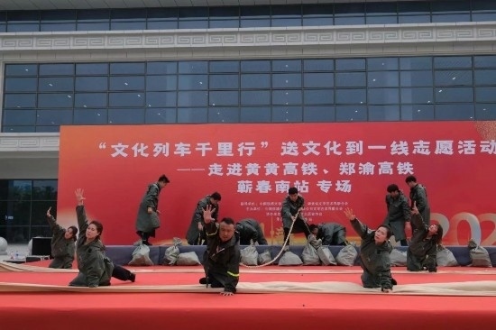 在黃黃高鐵蘄春南站、鄭渝高鐵興山綜合維修車間、浩吉鐵路襄州運(yùn)營維修段舉行的三場活動(dòng)亦是精彩紛呈。由牛悅敏、候孟陽、白石洋、李祥東、白愛潔、徐寧、王曉萍、周政輝、胡啟文、朵蘭、王瑛、蔣輝、以及幾十位武漢局集團(tuán)公司文藝志愿者的精彩節(jié)目輪番上演。優(yōu)美動(dòng)聽的歌舞、經(jīng)典優(yōu)美的京劇、詼諧幽默的大鼓、驚險(xiǎn)刺激的雜技,還有《朱家河上的守堤人》等情景劇感人至深,活動(dòng)現(xiàn)場濃厚的文藝氛圍感染著每一位觀眾。本次活動(dòng)惠及鐵路沿線車務(wù)、機(jī)務(wù)、工務(wù)、供電、電務(wù)等系統(tǒng)職工和高鐵列車旅客3500余人。