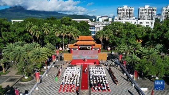 這是7月8日拍攝的五指山“上山爽一夏 故園·畢業(yè)季”暨州府故園文化節(jié)啟動(dòng)儀式現(xiàn)場(chǎng)(無(wú)人機(jī)照片)。