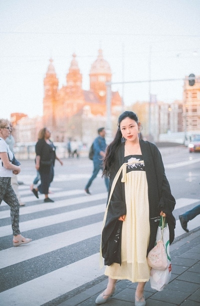 顧小思在荷蘭街頭傳播漢服文化。