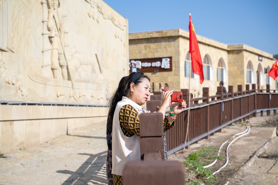 講解員賈吳珍介紹,老牛灣黃河大峽谷旅游區(qū)內(nèi)文物古跡眾多,自然人文景觀皆美,歷史文化底蘊深厚,正在積極努力創(chuàng)建國家5A級旅游景區(qū),讓世界各地游客充分領(lǐng)略老牛灣黃河大峽谷秀美風光。