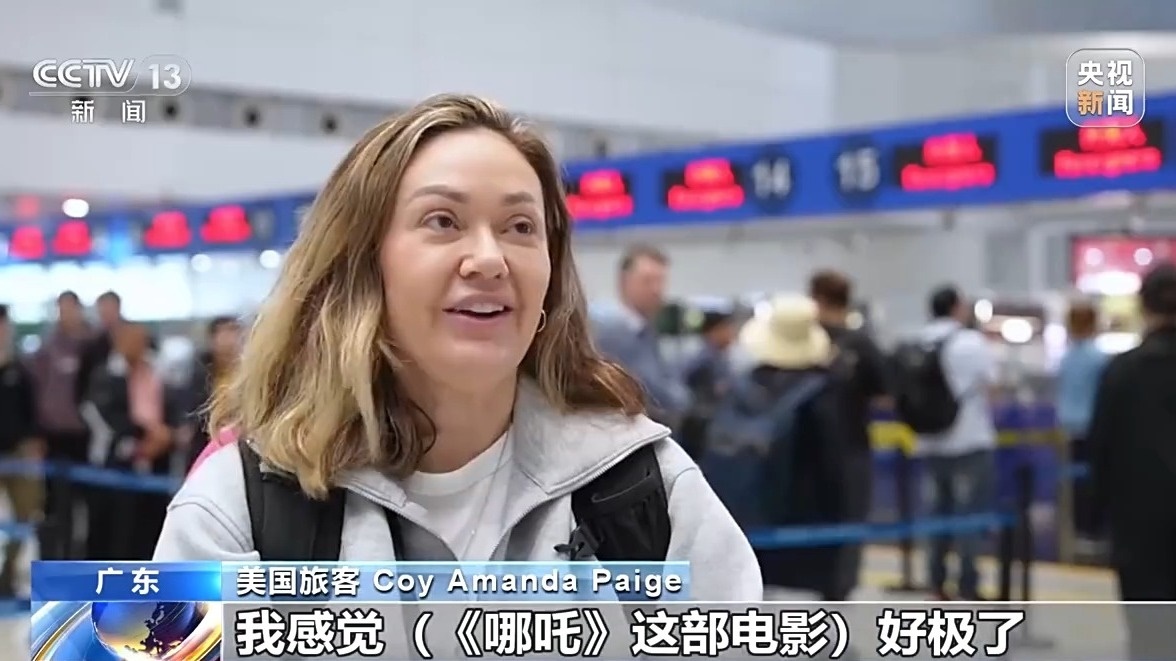 美國旅客 Coy Amanda Paige:我來自美國,我感覺《哪吒》這部電影好極了,我想讓我女兒看,我想她會(huì)喜歡的。