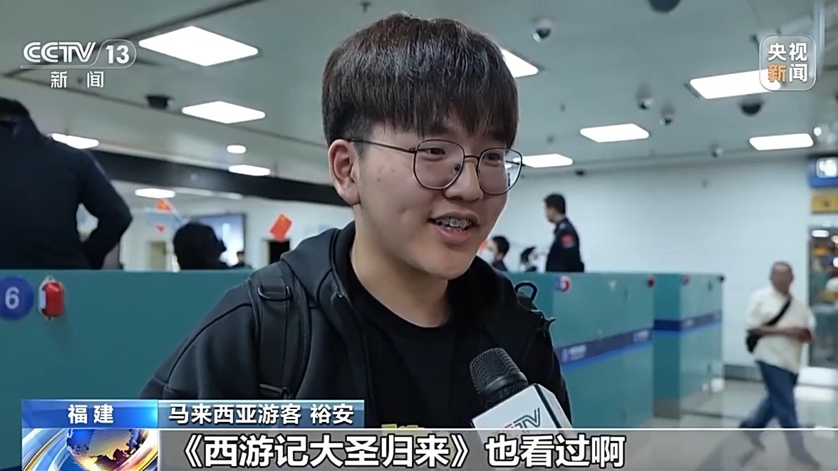 馬來西亞游客 安:第一集的《哪吒》我有看過,《西游記大圣歸來》也看過啊,就很喜歡它們的特效之類,《黑神話悟空》也打完了。(總臺(tái)央視記者 劉小月 廣東站 福建站)