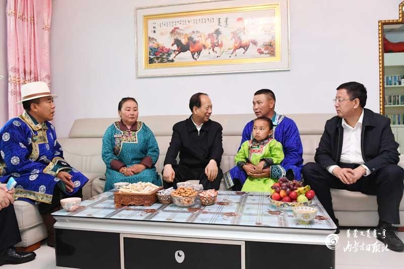 6月22日,自治區(qū)黨委書(shū)記、人大常委會(huì)主任石泰峰深入錫林郭勒盟東烏旗珠思嘎達(dá)布其鎮(zhèn)商都嘎查黨員中心戶(hù),了解牧民生活情況。內(nèi)蒙古日?qǐng)?bào)社融媒體記者 袁永紅 攝