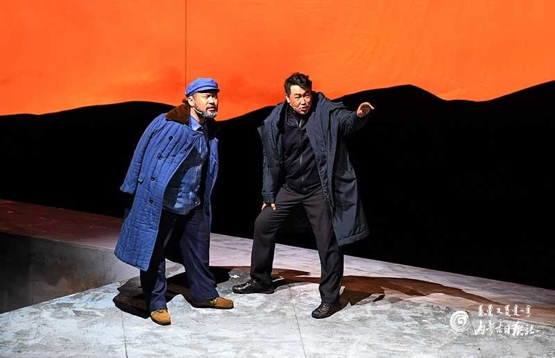 參演《紅手印》的都是來(lái)自草原的蒙古族演員,不僅要完成漢語(yǔ)的臺(tái)詞,還要熟練自然地講出大量?jī)?nèi)蒙古西部方言對(duì)白?!皩?duì)于話(huà)劇演員來(lái)說(shuō),臺(tái)詞功底太重要了。為了練好方言,我們好多演員早起練功的時(shí)候嘴里都念念有詞地說(shuō)著西部方言?!毖輪T烏仁朝魯門(mén)說(shuō)。他扮演的新扎木村主任令人印象深刻,一個(gè)一心想帶百姓致富卻屢遭失敗的老黨員形象?!爸氨硌輾v史題材的話(huà)劇大多是從影像和資料了解人物,這部戲的題材貼近觀眾們的現(xiàn)實(shí)生活,必須接地氣才能得到認(rèn)可。我通過(guò)寫(xiě)人物小傳的方式,深挖村主任的人物個(gè)性和從失望到燃起希望的內(nèi)心世界,讓觀眾能夠認(rèn)可這個(gè)形象。”烏仁朝魯門(mén)說(shuō)。