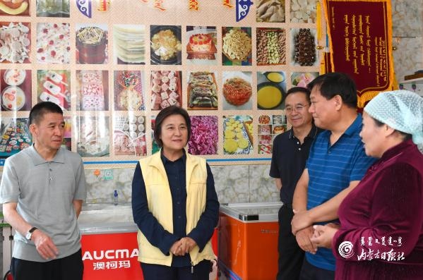 我區(qū)民族特色奶制品具有很大的發(fā)展?jié)摿?。在新巴爾虎左旗娜仁薩其爾巴爾虎奶食品加工基地,布小林考察產(chǎn)品種類、工藝流程、安全檢測、包裝銷售等方面的情況。得知基地被認(rèn)定為奶制品技藝培訓(xùn)教室和扶貧車間、主要安置建檔立卡貧困戶就業(yè)時,她對此給予肯定,鼓勵基地進一步發(fā)揮引領(lǐng)帶動作用,積極探索特色化、標(biāo)準(zhǔn)化、品牌化發(fā)展路子,幫助更多貧困群眾增收致富。
