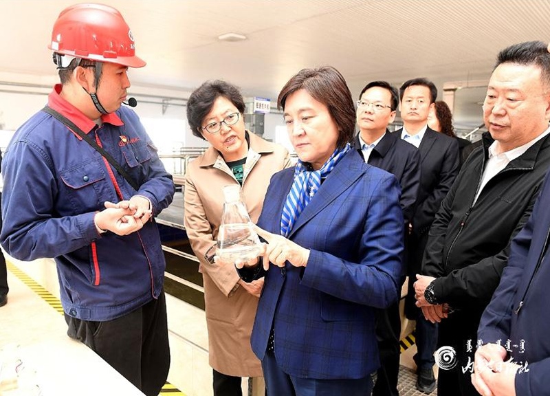 布小林十分關(guān)心沿黃地區(qū)的水資源節(jié)約集約高效利用和生態(tài)保護(hù)建設(shè)。她來到烏海市綠色生態(tài)農(nóng)業(yè)產(chǎn)業(yè)園,走進(jìn)綠農(nóng)永勝農(nóng)民專業(yè)合作社陽光大棚葡萄基地,詳細(xì)了解葡萄種植需水和高效節(jié)水設(shè)施的使用情況;在烏海市啟源供水有限公司,實(shí)地查看凈水工藝流程及針對黃河水特點(diǎn)采取的處理措施。布小林指出,我區(qū)沿黃地區(qū)大多水資源匱乏,生態(tài)保護(hù)和經(jīng)濟(jì)社會發(fā)展面臨水資源短缺的剛性約束。抓好水資源節(jié)約集約高效利用,是推進(jìn)黃河流域生態(tài)保護(hù)和高質(zhì)量發(fā)展的重中之重。要牢固樹立節(jié)水意識,堅(jiān)持以水定城、以水定地、以水定人、以水定產(chǎn),合理規(guī)劃人口、城市和產(chǎn)業(yè)發(fā)展,大力發(fā)展節(jié)水產(chǎn)業(yè)和技術(shù),實(shí)施全社會節(jié)水行動,推動用水方式由粗放向節(jié)約集約轉(zhuǎn)變。要大力發(fā)展循環(huán)經(jīng)濟(jì),結(jié)合技術(shù)改造和產(chǎn)品更新?lián)Q代,組織實(shí)施重大節(jié)水和水循環(huán)利用示范工程,提高水資源重復(fù)利用率。