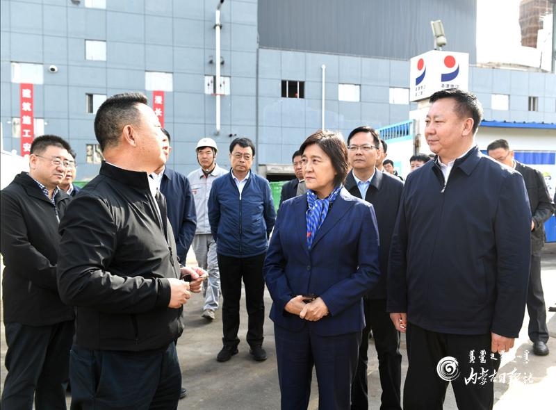 10月11日,自治區(qū)黨委副書記、自治區(qū)主席布小林來到烏海市烏達(dá)區(qū)內(nèi)蒙古興發(fā)科技有限公司有機(jī)硅新材料一體化循環(huán)項(xiàng)目現(xiàn)場,深入了解企業(yè)技術(shù)路線、環(huán)保裝置等方面情況。內(nèi)蒙古日報(bào)記者 韓卿立 攝
