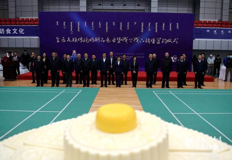 自治區(qū)黨委副書記、自治區(qū)主席布小林,國家市場監(jiān)督管理總局副局長孫梅君,自治區(qū)副主席歐陽曉暉出席活動(dòng),到鑲黃旗民族傳統(tǒng)奶制品產(chǎn)業(yè)園、檢測室以及部分民族傳統(tǒng)奶制品企業(yè)調(diào)研,參觀了各盟市民族傳統(tǒng)奶制品產(chǎn)品展示。與會(huì)領(lǐng)導(dǎo)們還共同見證了鑲黃旗乳香飄乳業(yè)公司制作的禮儀奶酪盤獲得“大世界基尼斯之最”紀(jì)錄認(rèn)證。