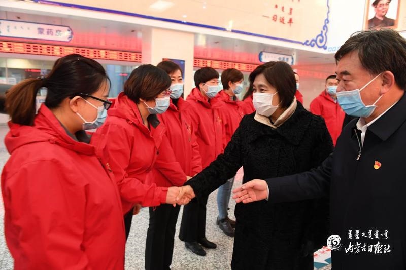 在烏蘭察布市蒙中醫(yī)院,布小林看望慰問(wèn)了援鄂醫(yī)務(wù)工作者。醫(yī)院16名醫(yī)護(hù)人員是烏蘭察布市首批支援湖北的逆行者,2020年1月28日奔赴湖北,在荊門(mén)市第一人民醫(yī)院、鐘祥市同仁醫(yī)院等醫(yī)療機(jī)構(gòu)奮戰(zhàn)50多天。布小林與他們一一握手表達(dá)敬意和感謝。她動(dòng)情地說(shuō),你們?cè)谧钗<钡臅r(shí)刻挻身而出,義無(wú)反顧沖向抗疫一線(xiàn),頑強(qiáng)拼搏,無(wú)私奉獻(xiàn),圓滿(mǎn)完成援鄂任務(wù),每一個(gè)人都非常了不起。目前的疫情防控形勢(shì)依然嚴(yán)峻復(fù)雜,希望大家繼續(xù)忠實(shí)履行醫(yī)務(wù)工作者的神圣職責(zé),同時(shí)要加強(qiáng)個(gè)人防護(hù)。她要求醫(yī)院精心做好內(nèi)部疫情防控工作,關(guān)心關(guān)愛(ài)醫(yī)護(hù)人員的身心健康。