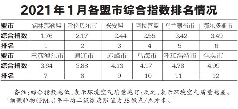 內(nèi)蒙古生態(tài)環(huán)境廳公布2021年1月全區(qū)環(huán)境空氣質(zhì)量狀況