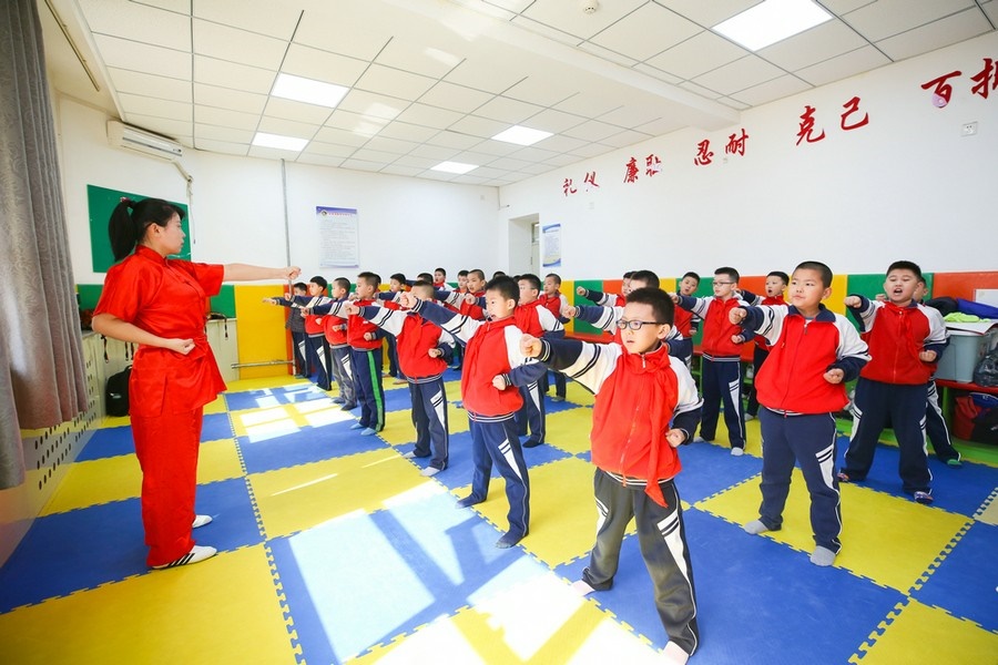 夏艷老師正在教同學(xué)們練習(xí)武術(shù)基本功 彭瑞誠(chéng) 攝影