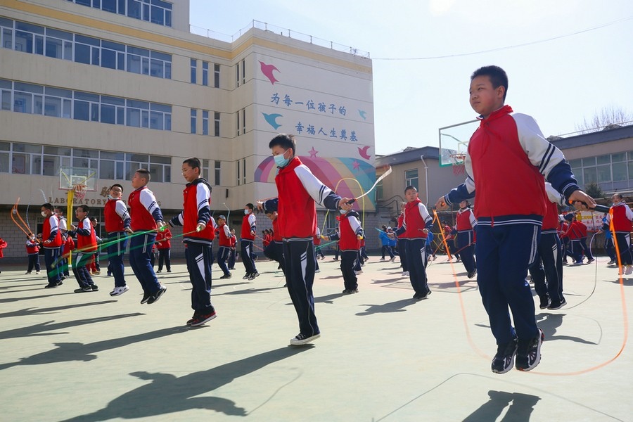 北疆新聞網(wǎng)、北疆新聞客戶端消息(記者 李艷紅)3月22日,呼和浩特市第四中學(xué)操場(chǎng)上熱鬧非凡,6年級(jí)4班的同學(xué)們正在進(jìn)行跳繩練習(xí),環(huán)繞操場(chǎng)的教學(xué)樓內(nèi)的,各年級(jí)學(xué)生正在體育教室中開展武術(shù)課、形體課、乒乓球課等特色體育課程。