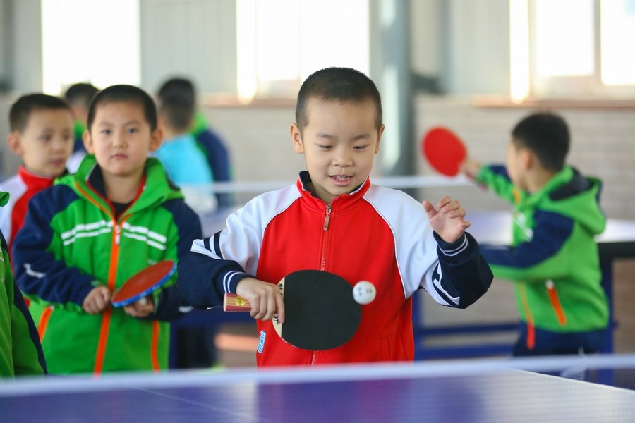 同學(xué)們正在練習(xí)乒乓球 彭瑞誠(chéng) 攝影