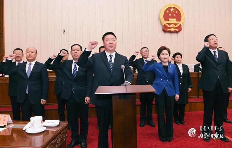 3月30日上午,自治區(qū)十三屆人大常委會(huì)第二十五次會(huì)議舉行憲法宣誓儀式。自治區(qū)黨委書記、人大常委會(huì)主任石泰峰主持并監(jiān)誓。圖為新任職人員依法進(jìn)行憲法宣誓。 內(nèi)蒙古日?qǐng)?bào)社融媒體記者 袁永紅 攝
