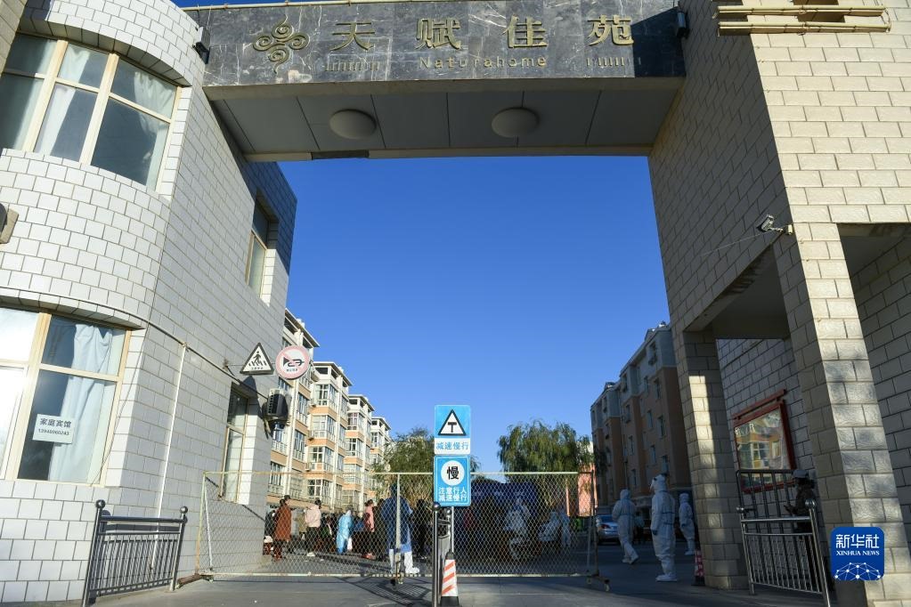 這是10月20日拍攝的因疫情封控的阿拉善盟額濟(jì)納旗達(dá)來呼布鎮(zhèn)天賦佳苑小區(qū)。新華社記者 貝赫 攝