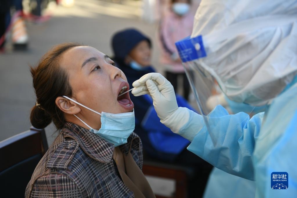 10月20日,在因疫情封控的阿拉善盟額濟(jì)納旗達(dá)來呼布鎮(zhèn)天賦佳苑小區(qū)內(nèi),核酸采樣工作有序開展。新華社記者 貝赫 攝