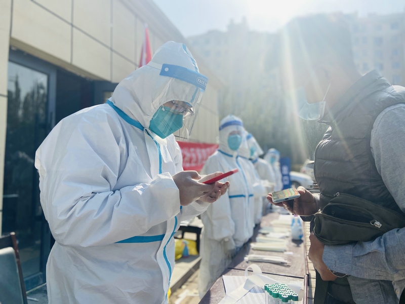 “疫情就是命令,作為一名黨員,要充分發(fā)揮先鋒模范作用?!痹诨孛駞^(qū)阿拉善北路社區(qū)新街坊監(jiān)測(cè)點(diǎn)參加志愿服務(wù)的張楚寒說(shuō)。