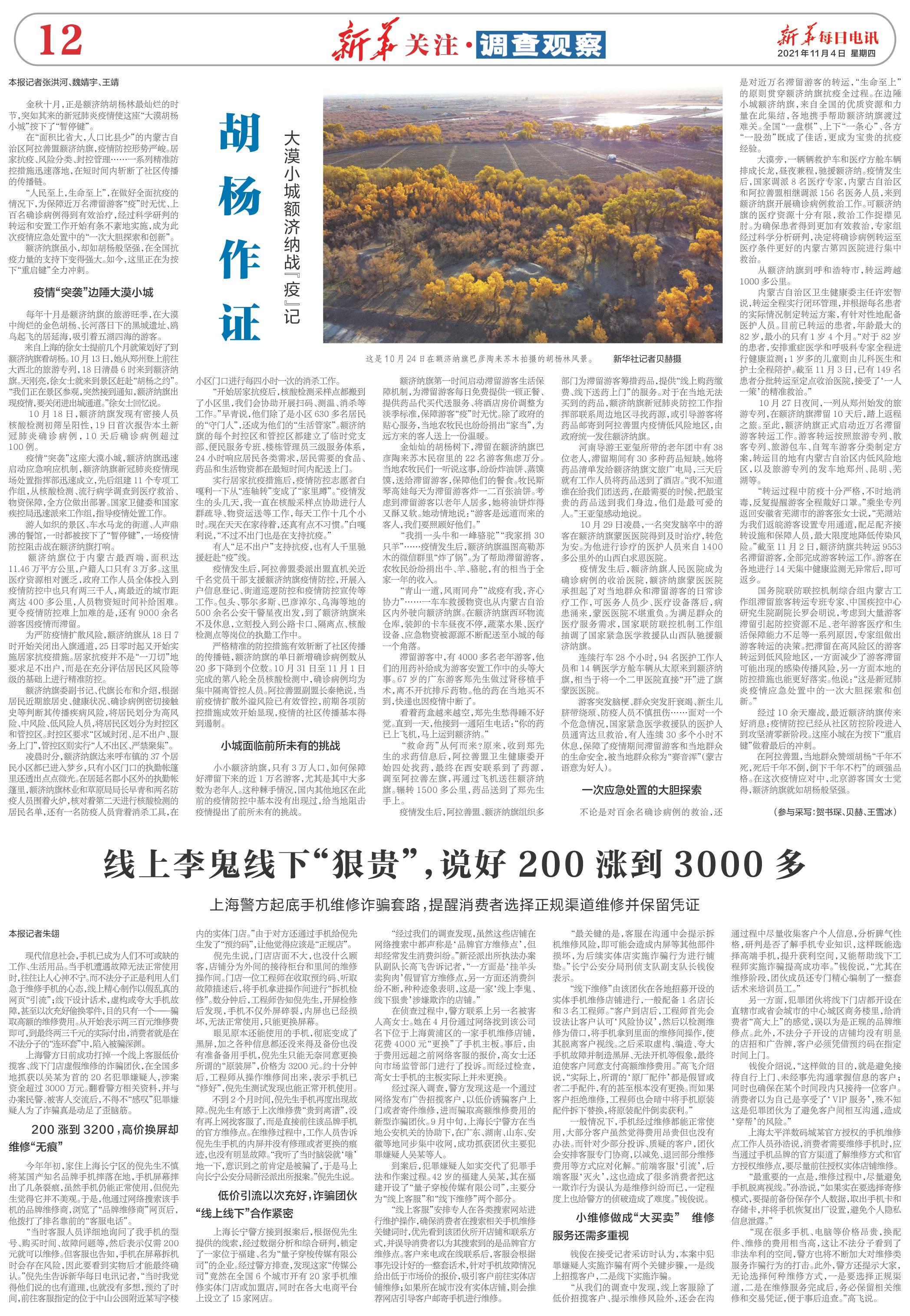 在阿拉善盟,當(dāng)?shù)厝罕娰濏灪鷹睢扒瓴凰?,死后千年不倒,倒下千年不朽”的頑強(qiáng)品格。在這次疫情應(yīng)對(duì)中,北京游客國女士覺得,額濟(jì)納旗就如胡楊般堅(jiān)強(qiáng)。