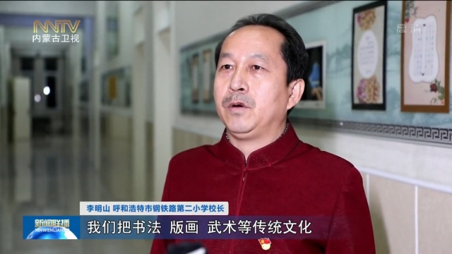 李明山 呼和浩特市鋼鐵路第二小學(xué)校長(zhǎng):我們把書法、版畫、武術(shù)等傳統(tǒng)文化融入到孩子們的課堂中,就是為了,讓他們從傳統(tǒng)文化中,感受我們民族的根,民族的魂,