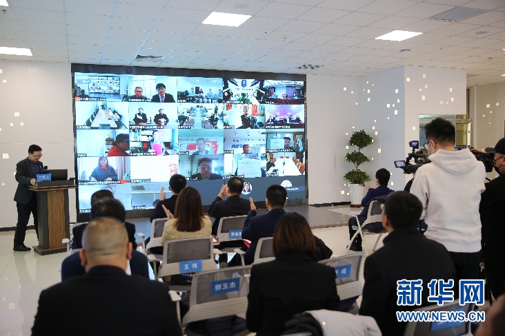 區(qū)外單位進行遠程簽約。新華網(wǎng) 楊騰格爾攝