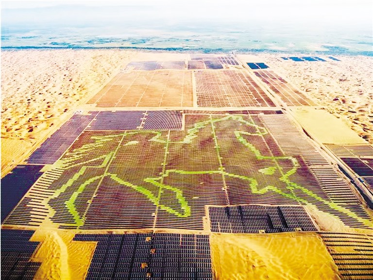 駿馬奔騰似潮涌,一日千里獨(dú)行空。庫布其沙漠腹地,由196320塊藍(lán)色光伏板組成的駿馬圖栩栩如生,格外吸睛。內(nèi)蒙古現(xiàn)代能源經(jīng)濟(jì),一如這昂首奔騰的駿馬,向著“雙碳”目標(biāo)奮蹄疾馳。(記者 許曉嵐 康麗娜)