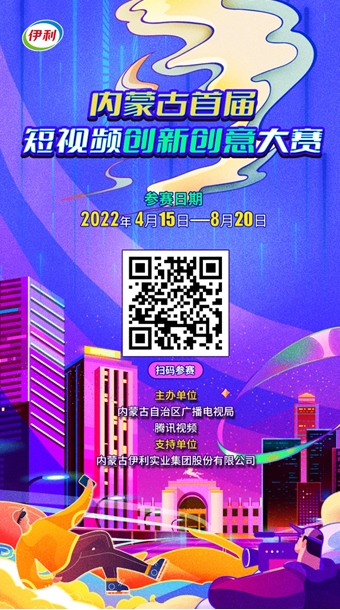 為進一步推動網(wǎng)絡(luò)視聽行業(yè)高質(zhì)量發(fā)展,充分發(fā)揮優(yōu)秀網(wǎng)絡(luò)視聽作品示范引領(lǐng)作用,激發(fā)網(wǎng)絡(luò)視聽創(chuàng)作創(chuàng)新活力,唱響新時代主旋律,壯大主流輿論,傳播正能量,內(nèi)蒙古自治區(qū)廣播電視局特舉辦“內(nèi)蒙古首屆短視頻創(chuàng)新創(chuàng)意大賽”。本次大賽以“奮進新征程建功新時代亮麗內(nèi)蒙古”為主題,聯(lián)合騰訊視頻、內(nèi)蒙古伊利實業(yè)集團股份有限公司共同舉辦。
