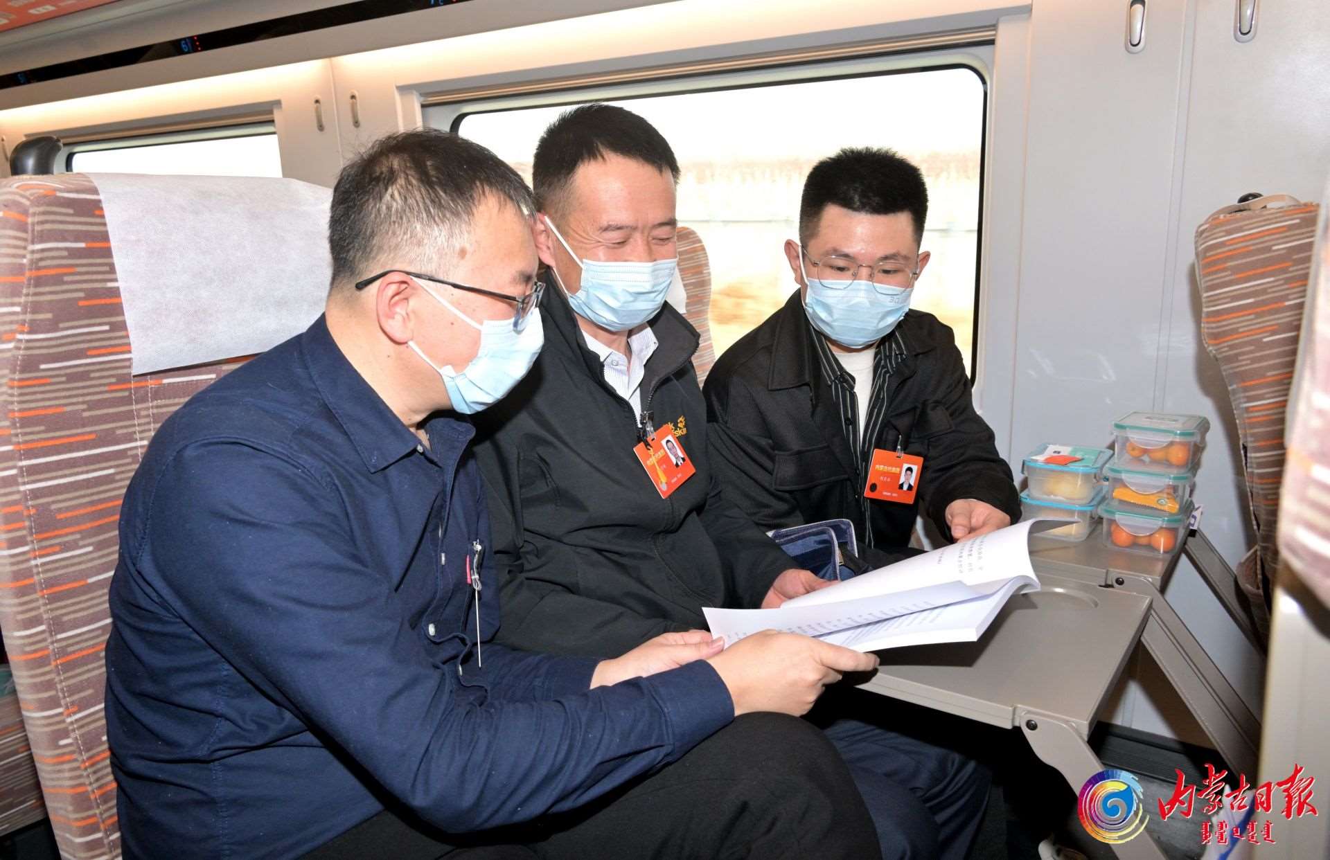 出席十四屆全國(guó)人大一次會(huì)議的內(nèi)蒙古代表團(tuán)代表在赴京列車上互相交流。內(nèi)蒙古日?qǐng)?bào)?草原全媒記者馬建荃攝