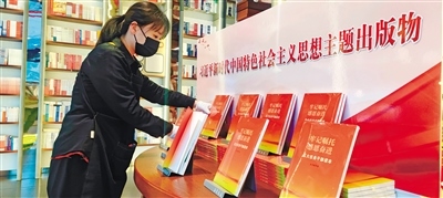 5月4日,內(nèi)蒙古新華書店工作人員整理擺放《牢記囑托感恩奮進——五大任務(wù)干部讀本》。牟野攝