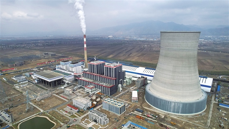 正在運行中的金山熱電二期2×66萬千瓦擴建項目。記者金泉攝